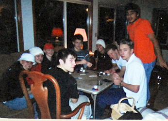 Jim and I declared a sleepover, our first CO-ED sleepover. We decided the road anger was greater than the boy/girl danger in this instance. The kids cheered, literally; this was even better than having school canceled. They all called their parents, who seemed relieved, but the girls' parents had a couple extra questions. (Are Zach's parents there? Are you the only girl?) They must have been satisfied with the answers, but they didn't really have much choice, either. We also remembered these kids are in college, with the freedom for more trouble there than here anytime.