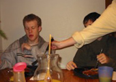 At 6 AM, they were hungry for breakfast so I made french toast. (Yes, that's three hours of sleep.) Some of the all-nighters didn't know whether to refer to “today” or “yesterday” in conversation. As the day wore on, I pulled out all my Christmas leftovers, heated them in pretty bowls, and set them out. They disappeared.
