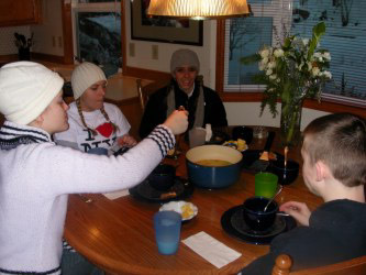 Some parents retrieved their kids as the day wore on, and the boy with a four-wheel drive truck made it out on his own, but the roads stayed so slippery up here that we never got mail. Jim answered the phone. Mary called about her exchange student son. Jim was clueless which kid he was. (We had more than one Chris here, and I was in the shower at the time.) Mary dispatched her real son to come fetch Chris on foot. They don't live too far away, but Chris was uncertain about the way to go. Chris scampered off in his t-shirt and jeans before I could force a coat on him. Everyone said not to worry: Chris was from Sweden. Still, I know everyone will wonder, How could she let him go out like that? It's still a sexist world, at least when it comes to outerwear.