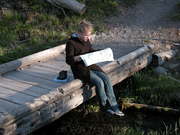 Three years ago, we visited Yellowstone’s Old Faithful as part of our whirlwind family “Heritage Tour” of places our grandparents lived and loved. We saw folks on cabin porches, sitting, doing little else. We wanted that. Today we have our own stay of days at an Old Faithful cabin; we’ve hardly left the area.