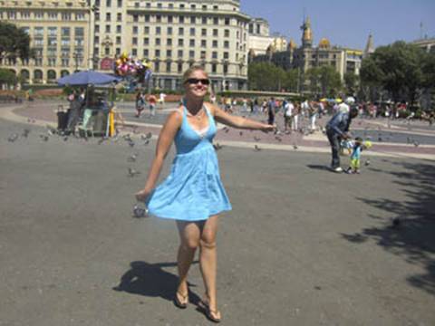Lovely Annie, swirling in Barcelona’s Plaza de Catalunya
