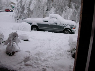 Before I sat down just now, I had to ask my children what day it was. I'm that befuddled. The last extra kid just left a couple hours ago. His dad, a trucker, had to install tire chains on his son's car before they could leave. Joey had already mostly dug his Sentra from the deep accumulation using one of my rubber cutting boards. I wasn't sure what color his car was before that.