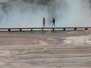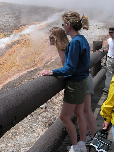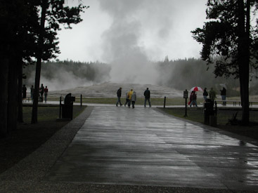 Outside the geyser’s set to erupt again at any moment, but I’ve already witnessed it multiple times, hanging out in the neighborhood so much. Instead, I’m ready for a hot shower and a date with Meriwether Lewis. Jim walks me back to our Snow Lodge Cabin, but he and Annie can’t seem to leave the Inn lobby quite yet this evening. I understand.